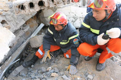 当搜救分队携带救援装备火速到达现场后,搜救队首先利用搜救犬进行定位,然后再用搜索仪器对幸存者进行精确定位。初步确定受困者位置后,立即实施营救行动……