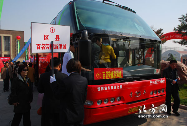 特别是交通集团首次推出的“津城美景一日游”、“十万市民游滨海”、“百名劳模游津城”旅游专线更是火爆,六条专线天天爆满,4月29日到5月3日,共发出旅游专线150余车次,8000余名游客喜游津门。游客中既有本市市民、劳动模范,也有来自北京、河北等地的旅游团队。许多游客在游览后都对天津独特的旅游资源和大气洋气、清新靓丽的城市新貌交口称赞。大家兴奋地说:“津城美景一日游”、“十万市民游滨海”旅游专线的开通把散落的景点串联起来,为中外游客游览天津提供了方便。导游员的精彩讲解和热情服务让我们更多地了解家乡发生的巨大变化和深厚的历史文化底蕴。