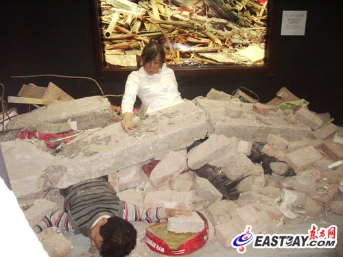 | 一间密闭的黑屋子来回剧烈摆动,里面传来了众人的惊声尖叫……在上海世博会远大馆的门前,每隔3分钟左右,这样“恐怖”的场景便会重现一次。在这里,模拟版的8级地震将来到你脚下,毫不夸张地重现地震发生时的场面。图注:在远大馆的地震科技体验馆,你可以看到汶川地震现场断壁残垣的真实再现。 |