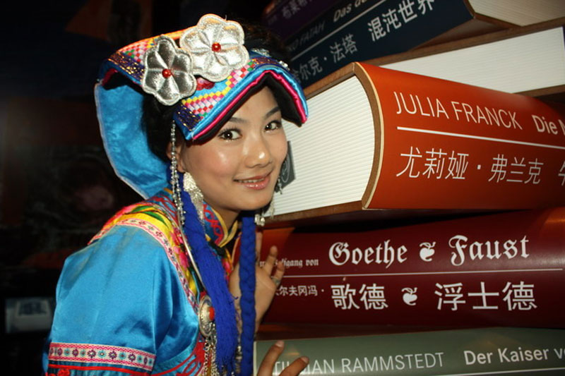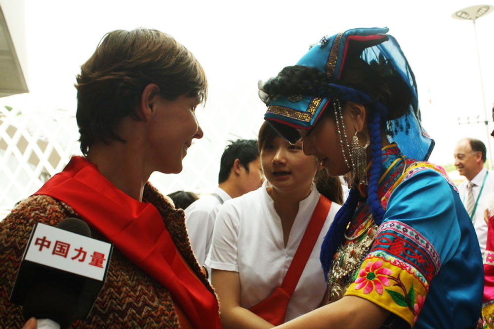 | 族美少女在世博园走到哪里都受关注,德国馆的馆长特意给这群美少女开辟VIP通道入馆参观。 |