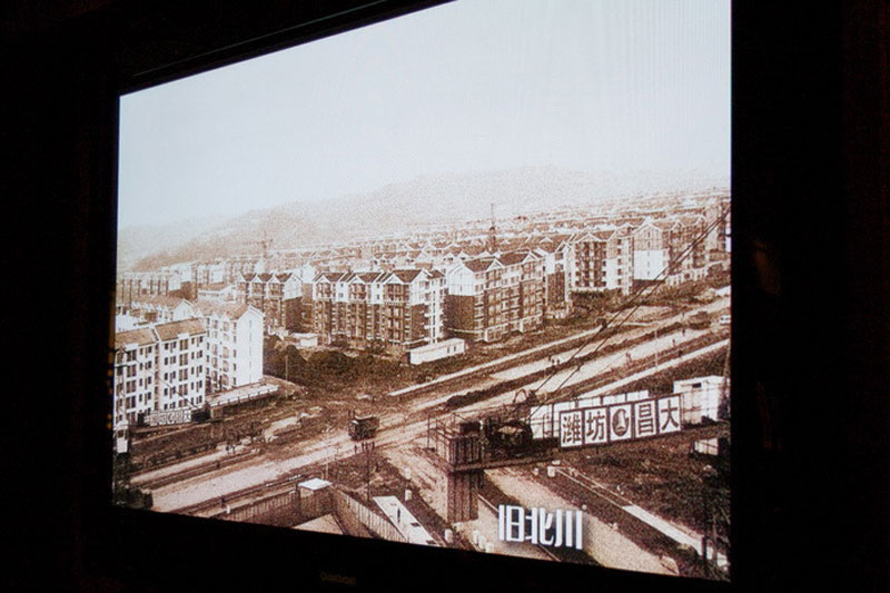 | 四川馆放映纪念影片。图为片中的新北川。 |