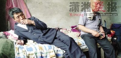 | 5月13日,赵作海的儿子赵西良现身,父子相见有些陌生各自抽着闷烟。赵作海曾在提起儿子时老泪纵横,“他从来没探过我的监。”。 |