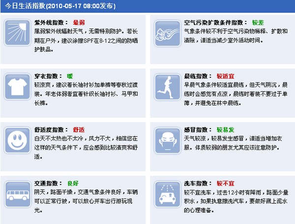 | 生活指数一览 |