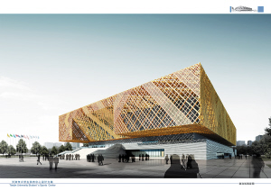 天津奥林匹克中心鸟瞰效果图,右下方的是天津奥林匹克中心游泳跳水馆