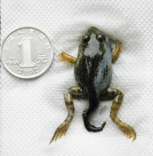 天津北方网讯:本报曾报道的蓟县官庄镇邢家沟村部分水塘发现野生巨蛙和巨型蝌蚪经市自然博物馆古远博士辨认,证实为牛蛙。据古远介绍,该物种系危险的外来入侵物种,已被世界保护联盟(IUCN)入侵种专家组(ISSG)列为全球100种最具危害的入侵种。由于同时发现了蝌蚪、亚成体和成体,说明这些牛蛙已完全适应天津地区的野外环境,并建立了可繁殖的自然种群,其对当地环境的危害还需做进一步调查。此次发现同时也改写了天津地区无牛蛙自然种群的“历史”,更为该物种幼体在极端恶劣气候条件下越冬提供了不可多得的图像资料。另悉,今年4月份,蓟县的于桥水库地区也发现了牛蛙的踪影,并发现部分群众在水库放生牛蛙、巴西龟、泥鳅等生物。