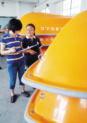 昨天上午九时刚过,一辆满载橘红色橡皮船的运输车驶入仓库区。“橡皮船虽然没有冲锋舟马力大,但一艘船上能乘9个人,在危险时刻,也是救命船了。”市水务局物资处杨柳青仓库的屈恩文主任告诉记者,目前购置的橡皮船都能挂上挂机以增加速度,在防汛中的作用不亚于冲锋舟。