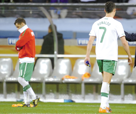 另外,欧洲球队中存在的太多的大腕球员似乎也无心“为国捐躯”,他们在国家队的带头作用远低于在各自的俱乐部。如果不是要踢世界杯,这当口正“阳光沙滩海浪花姑娘”浪漫呐,结果却被领到忽冷忽热、忽雨忽风、忽高忽低的南非来踢球,还要面对全国人民苛求的目光注视,简直倒了霉了。注定有一部分人会滋生“活思想”:算了吧,早走早歇着,去俱乐部上班才是正经事。比如C罗……(记者陈彤)