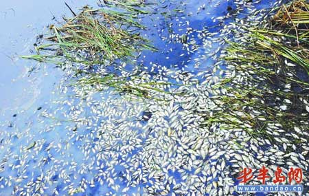 至于鱼儿死亡的原因,其中一名环保工作人员分析说,他在现场查看时发现一些没有死去的鱼儿不停地露出水面呼吸,这名工作人员断定,是因为河水缺氧导致了大量鱼儿死亡。