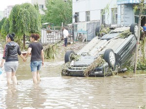 火车被冲走,汽车如风吹落叶般翻滚,主街路积水最深达4米深,县城内两条河流溢出河道,平房区一片汪洋,居民躲在楼顶等待救援。整个县城交通、供水、供电、通讯全部瘫痪。房屋倒塌无数,死亡人数目前尚无法统计。“我活了80来岁了,从未见过这么大的水。”昨日,永吉县县城一位王老先生这样告诉记者。