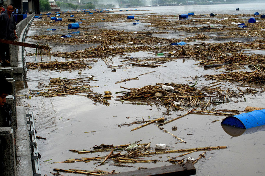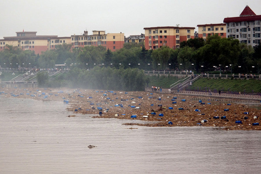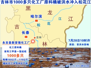 | 这是7月28日拍摄的漂浮在松花江中的化工厂原料桶。事件发生后,相关部门在松花江沿途设置8道防线进行拦截。由于部分地区停水,当地出现抢购矿泉水现象。 |