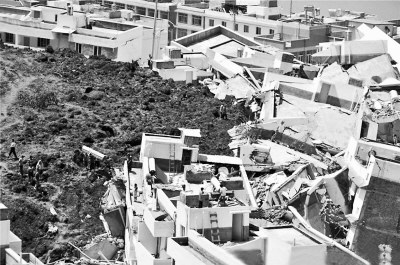 7月27日,四川省汉源县暴雨造成山体滑坡,致使城镇部分房屋被埋。