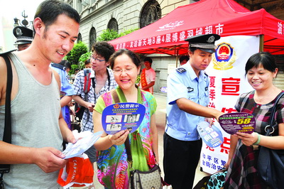 日前,公安和平分局金街派出所针对夏季治安特点,印制了大量带有“民警提示”内容的凉扇,在夏季治安宣传点向过往游客发放,提醒大家增强防盗意识,受到群众的欢迎。