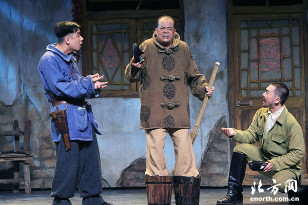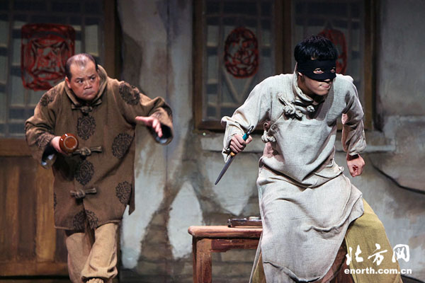 天津北方网讯:地道纯正的南北方言,夸张、搞怪的动作、幽默爆笑的表演,轻松调侃的情节……这些放在一部话剧里,绝对够味,绝对劲爆。8月19日晚,天津人艺“80后工作室”编排的首个原创漫画式喜剧《天生胆小》在人艺实验剧场进行了彩排。该剧是“精彩在沃”话剧专场演出的剧目之一,将于20日晚与天津观众见面,并一直演出到9月10日。