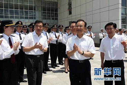 8月21日,温家宝来到深圳湾口岸的口岸监控中心,了解口岸通关情况,看望口岸监管人员。 |