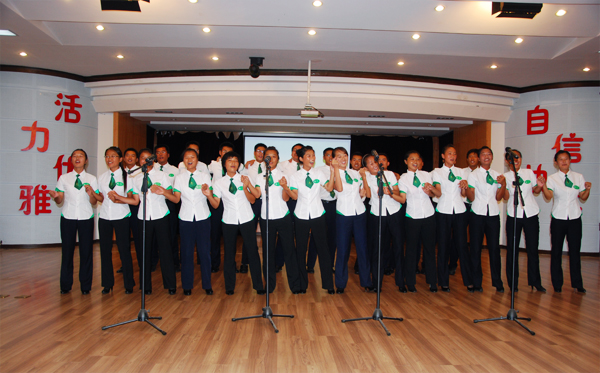 2010年8月21日,永安公墓新员工为期36天的军训顺利结束,26位90后新员工在风雨中上演队列会操。永安公墓总经理张昕与全体员工冒雨观看了这一仪式。