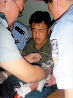 等在一边的120急救人员赶紧用纱布对该男子的伤口进行包扎。在民警的护送下,这名男子被送到了第一中心医院的东院,随即急诊医生为男子紧急缝合了伤口。从男子随身携带的身份证上看,他来自黑龙江,今年只有26岁。