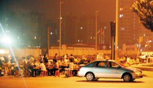 由于这里临近医院,而且附近过往的出租车又不是很多,所以一些出租车司机就边在这里边吃夜宵边等活儿。