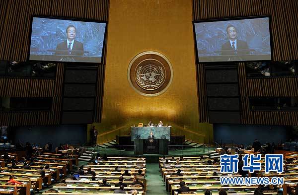 | 当地时间9月22日,中国国务院总理温家宝在纽约联合国总部出席联合国千年发展目标高级别会议并发表讲话。 |