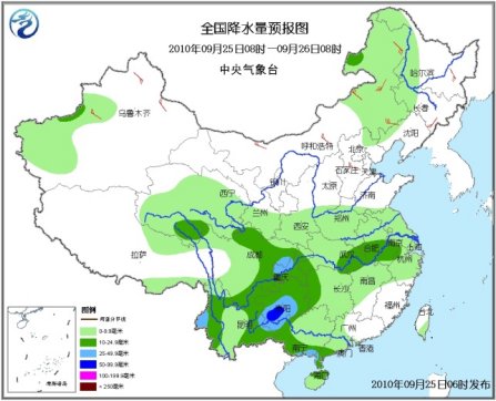 具体预报如下:25日08时至26日08时,内蒙古东部、东北西部的部分地区有小到中雨(雪)或雨夹雪;新疆西南部、西藏东北部和东南部、青海大部、甘肃南部、陕西南部、山西南部、黄淮中西部、江汉、江淮、江南大部、华南中西部、西南地区有小到中雨或阵雨,其中,四川东南部、重庆西北部、云南西部和东南部、贵州西南部、广西西北部和南部沿海等地的部分地区有大雨,局部地区有暴雨,上述地区局部伴有短时雷雨大风或冰雹等强对流天气。甘肃西部、宁夏北部、内蒙古大部、华北北部、东北等地有4~6级风。渤海、黄海北部海域将有4~6级西南风;东海大部海域、台湾海峡、台湾以东洋面和以南海域将有4~6级东北风。
