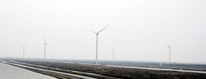 本市首个风力发电项目——大神堂风电场目前已经完成了基础建设和电源线并网施工。在风电场13台80米高的白色风机矗立在海边。这些风机由南到北呈三条直线排列,最南边的三台风机建在海中,中间一排拥有3台风机,最北侧一排是7台风机。“因为风机比较大,所以排与排之间的间隔大约是600米,而每排的风机之间的间隔大约是500米。”津能风电公司副总经理白鸿斌说,“这样既能充分利用风能,又能合理利用土地资源,是一种科学布局。”一般3级以上的风就可以用来发电,不过7~8级的风是最好的。大神堂地区的平均风力能达到6级,是比较理想的风电场,特别是涨潮的时候,风力就更大了。