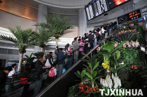 9月28日,为迎接国庆六十一周年的到来,天津火车站在车站内外种植摆放了60多个品种,30多万株各类鲜花和绿植树木,让旅客步入车站后就置身于舒适幽静的绿色候车环境之中,使旅客在出行的旅途当中感到快乐与愉悦。