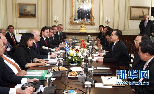| 10月2日,中国国务院总理温家宝在雅典与希腊总理帕潘德里欧举行大范围会谈。 |