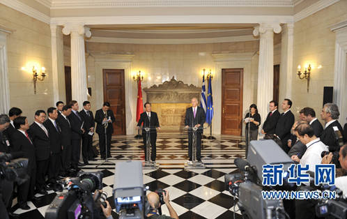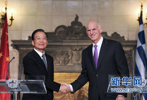 | 10月2日,中国国务院总理温家宝与希腊总理帕潘德里欧在雅典共同会见记者。 |