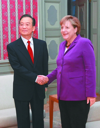10月5日,国务院总理温家宝和德国总理默克尔在德国梅泽贝格宫举行会晤,并发表中德总理会晤联合新闻公报。