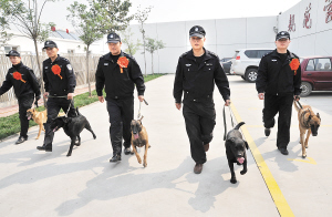 天津北方网讯:今天凌晨5:30,16条搜爆犬集合于市公安刑侦局整装待发,在于治宏、何风瑞、梁晓川等5名训导员的带领下乘坐当天的飞机奔赴羊城,执行广州亚运会的安保任务。在亚运会前夕和比赛期间,这16条搜爆犬将由公安部统一管理协调,对官员、运动员居住的宾馆、比赛用场地进行搜爆检查。今天抵达广州后,天津的这16条搜爆犬将和沈阳、北京的警犬一起,成为继昆明之后第二批亚运会的搜爆犬“护卫队”。