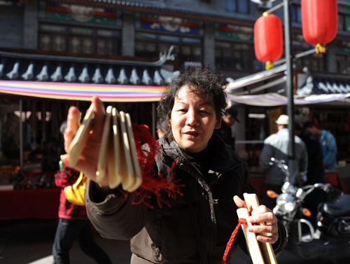 天津鼓楼作为天津三宗宝之首,是天津传统文化浓郁的一道风景线。围绕鼓楼新建的鼓楼商业街以青砖瓦房的明清建筑风格为主,汇集了天津乐器、书画和手工艺品等店铺,经营书画、雕刻、乐器、风筝等店铺的生意人大多身怀绝技,掌握各类手工艺品的制作和使用技巧,给商业街增添了更多的传统气息和民俗韵味。新华社记者岳月伟摄