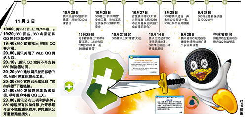 9时10分,360正式下线扣扣保镖产品,并发布“紧急求助信”,称目前是360生死存亡的紧急关头,希望用户“为了互联网安全的未来停用腾讯QQ三天”。