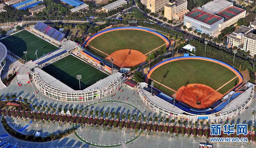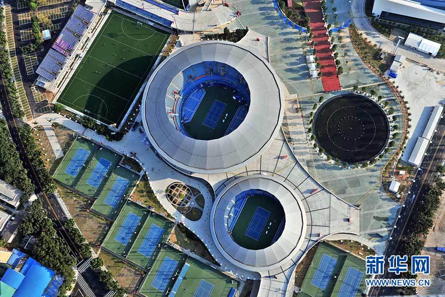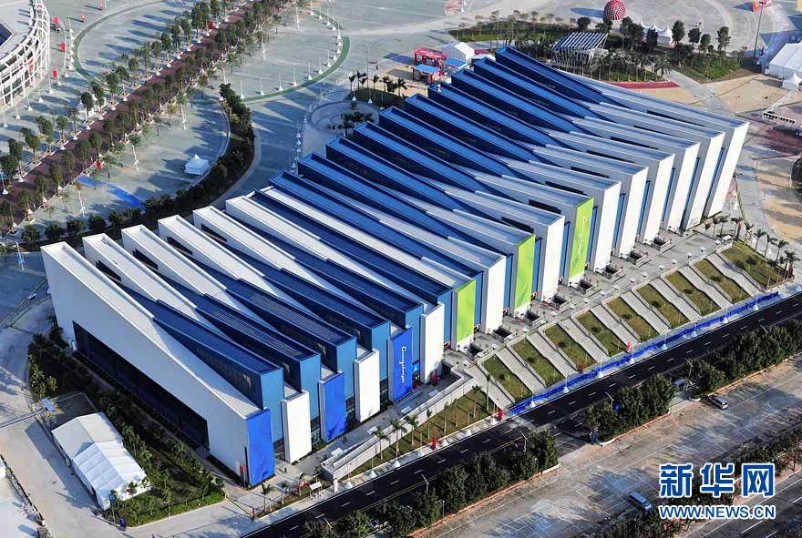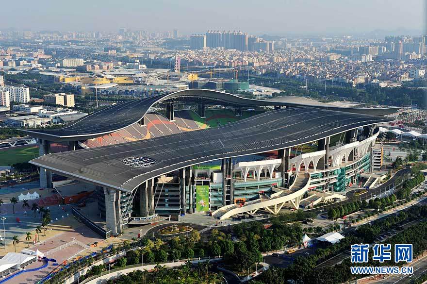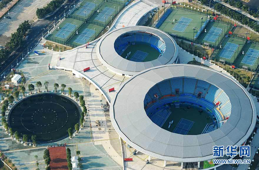 图为航拍的广东奥体游泳馆(摄于10月29日)。在广州亚运会期间,广东奥林匹克体育中心场馆群将举行田径、游泳、射击、网球、棒球等项目的比赛。