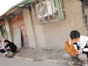 沿新华路前行到胜利路,赵睿说,路边很多人都是他们的“同道”。这些人或独自一人或三五成群,沿路“监视”着。刚拐过胜利路,赵睿的电话又一次响起。接完电话,赵睿说有人在胡同口等他。果不其然,在一个胡同口一个20多岁的男子正提着一个红色旅行包等待赵睿。接过包后赵睿表示,还有其他物品在“家里”。男子迟疑了一下,才带着我们进入了胡同深处的“家”。这是一间30平方米左右的大平房,被分割成三间。中间的屋子里有两个破旧的沙发和一个旧橱子及几把塑料椅子,像个客厅的模样。两边的房间则是男女宿舍,宿舍里陈设很简单,地面铺着泡沫塑料,几床被褥堆放在一角。在这个简陋的“家”中,只有一个20多岁,穿着蓝色棉衣的男子在等待。