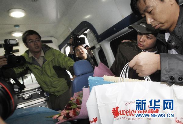 14日下午,冲绳以南海域沉没货船上的3名幸存中国船员耿文磊、杨磊、纪长丰搭乘东航MU288次航班抵达上海浦东国际机场。
