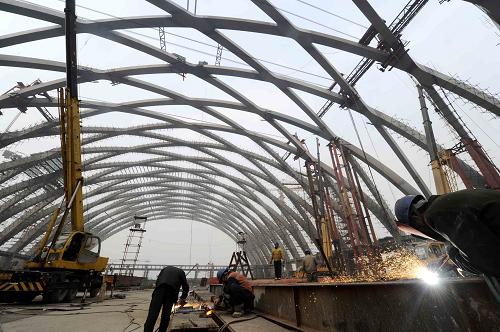 天津西站站房主体封顶 10万㎡屋顶要“玻璃衣”