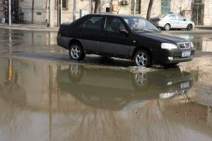 昨天(11月28日)10:00左右,记者来到位于河东区六纬路附近的现场,看到非机动车道汪洋一片,连便道上都是,水流出了三四百米。一工地门口积水最深,道路泥泞不堪。“水流了四五天了”,工地看门大爷表示。在附近上班的小张说:“早晨骑车路过,差点被结的冰滑倒。”逆着水流走到机动车道上,水浸湿了鞋子,路中间两股水柱有15厘米高,不停地从水井里往外冒水,井盖上写着“天津自来水”。