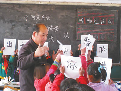 与城市里那些精心准备的公开课相比,许海英老师的课看上去并不热闹没有调动孩子兴趣的多媒体课件,没有新课程改革提倡的互动式参与,也没有衍生出来的拓展内容。唯一不同的是,她使用了一种被称为“211”的教学模式。