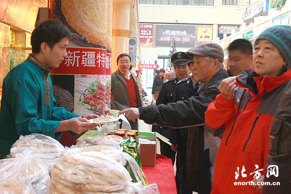 展销活动的主办者表示,新疆的美食闻名于世,不过在天津能吃到正宗新疆美食特产的地方不多,此次,新疆生产建设兵团商会组织新疆企业直接参展,省去了中间环节,使新疆美食直接登陆天津市场,让天津的市民游客直接品尝到原汁原味的新疆特产。据悉,展销将从2010年12月19日持续到2011年1月30日。(记者霍艳华)