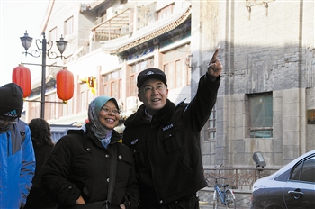 鼓楼商业街上中外游客聚集,游客与商户之间常发生纠纷,因语言不通使矛盾升级的情况也时有发生。年近60岁的安宝诚靠着自己的“钻”劲,用英语和外国友人交流,巧妙地化解大事小情。