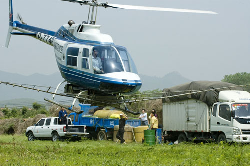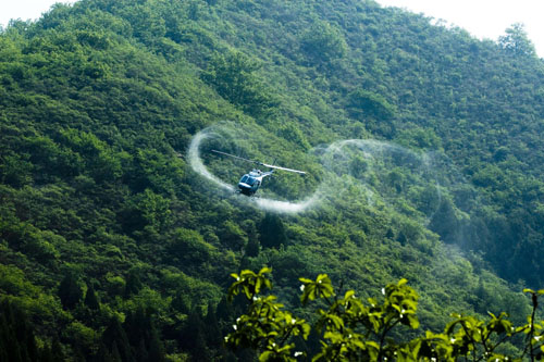 5月22日,飞机在林海上空喷洒杀虫剂。当日,天津蓟县林业局用飞机在津围公路以东的松树林上空实施喷洒杀虫剂作业,防治松梢螟,作业面积约3万亩。这次大面积喷洒杀虫剂,对于打造京、津绿色屏障具有重要意义。
