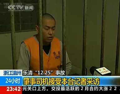 昨天23时许,制造“12.25”乐清事件的肇事者费良玉现身中央电视台,接受了记者采访。镜头中的费良玉身穿号服,戴着手铐,他承认无证驾驶,还回忆了事发时的细节,并回应了部分质疑。