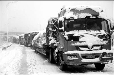 “昨晚10点我就堵在这里了,已经8个小时没动了。”开往河北石家庄的货车司机徐师傅望着夜空说,希望天亮能通车。一夜未睡的徐师傅显得有些疲劳,但双眼充满希冀。