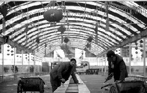 1月20日,工人在成都火车站搭建临时候车棚。新华社发