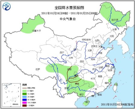 春运进入第六天,据中央气象台24日早间发布的预报称,受冷暖空气共同影响,未来三天,新疆北部、内蒙古东部、黑龙江大部、西北地区东南部、西南地区北部和中东部、江汉大部、江淮西部、江南大部、华南西部等地有小到中雪(雨)或雨夹雪,其中,新疆北部沿天山的部分地区有中到大雪;云南东北部、贵州中西部的部分地区有冻雨。26日起,南方地区又将出现一次大范围的雨雪天气过程。我国东南部海域将有7~8级、阵风9~10级大风。