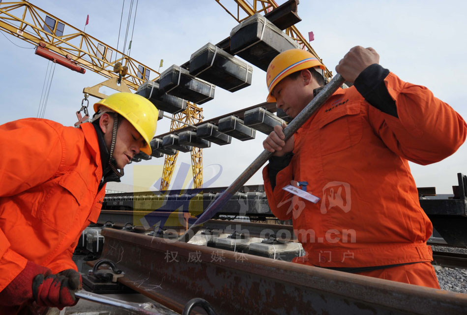 地铁2号线轨道加紧铺设
