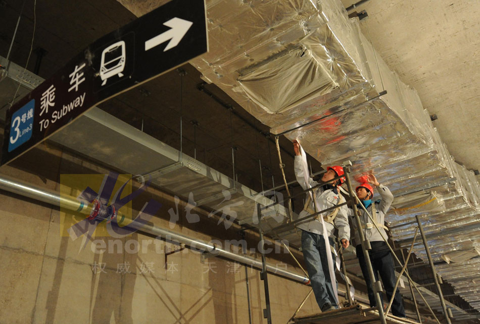 地铁3号线工地,施工人员正在进行设备安装。