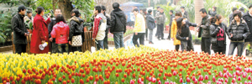 昨日(2月7日),热情的游客在植物园内的4D影院前排起长龙。据工作人员介绍,影院平时每天播放4场4D电影,由于春节期间游客猛增,从大年初一起就开始增加放映场次。“刚开始一天增加三四场,前天一天就放映了16场,下午闭园时还有人排队。看今天的阵势,估计要突破16场的纪录了。”