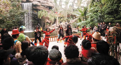 昨日(2月7日)上午9时许,来自河南滑稽之家小丑表演艺术团的小丑们,就赶到植物园入口迎接游客。他们有的踩着高跷;有的做出滑稽动作;有的将气球制作成小动物送给入园小朋友……引得刚入园的游客乐得合不拢嘴。之后,艺术团开始表演藏族歌舞,少数民族的姑娘小伙们也展示了特色舞蹈及喷火等绝活。首场演出刚刚结束,游客们再次收获意外惊喜,特型演员李学明扮演的毛主席出场了。他亲切地与演员和观众握手,现场响起热烈掌声,许多观众甚至跑上台与“主席”合影留念。