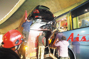 天津北方网讯:前日晚10时左右,在快速路卫昆桥下桥处,一辆班车追尾一辆加长货车,可货车上拉运的不是普通的货物,而是总价值在300万元左右的4辆名车,这个追尾意外代价不小,因为仅仅是名车受损维修费就要至少20万元。