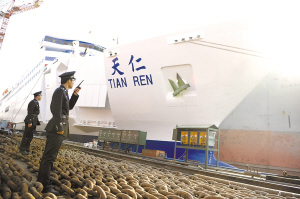天津北方网讯 2月24日电:昨日(23日),天津港中韩客运班轮“天仁”轮在南疆边检站民警的监护下顺利前往锚地试航,试航成功后中韩客运班轮将于近日起复航。试航中边检民警随船护航对船体进行全面检查,并对船舶周边进行巡视,以防非法搭靠、偷渡等违法违规情况发生。图为边检民警对“天仁”轮试航进行全面监控。(记者周伟摄 通讯员郭玲)